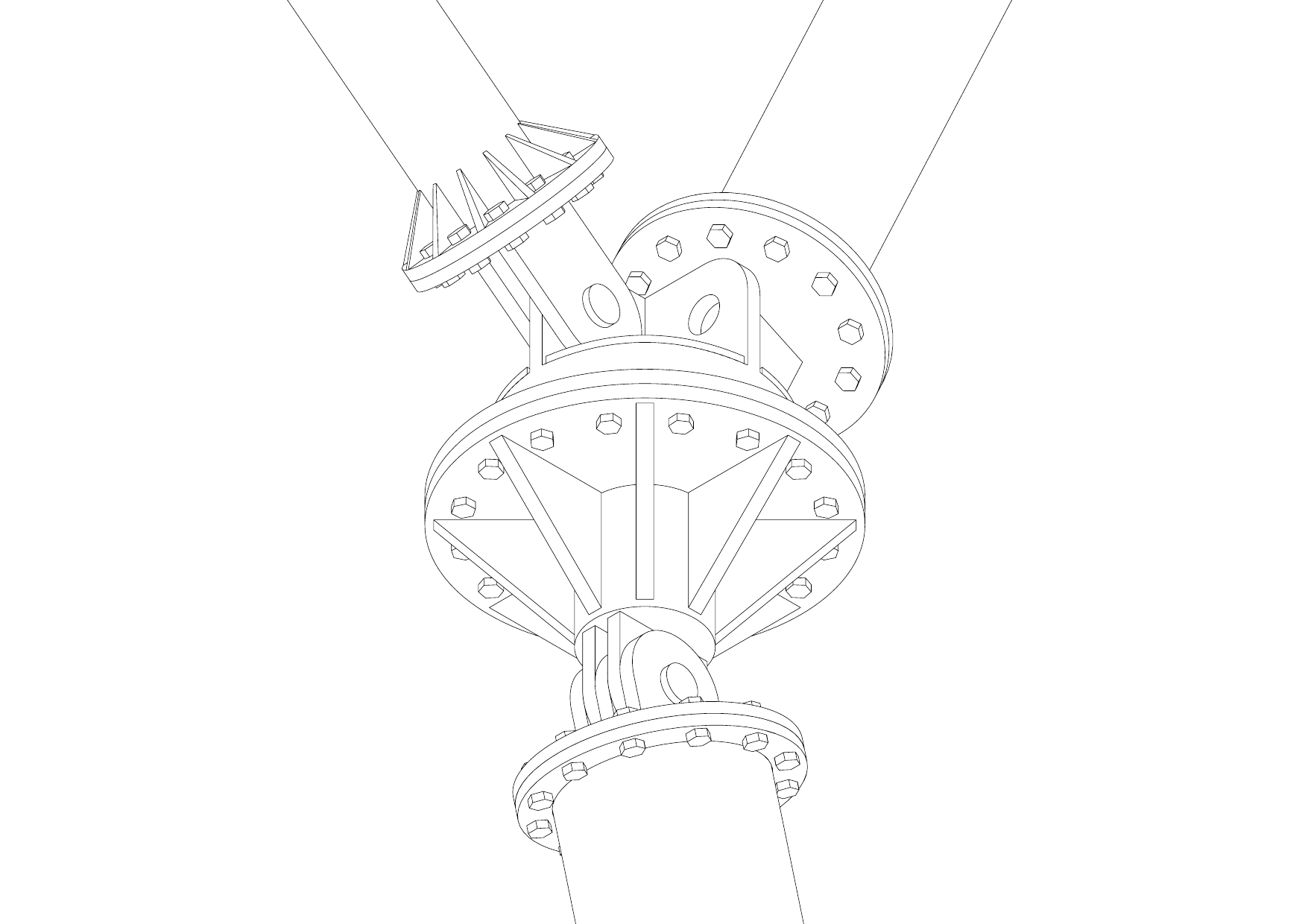 Triangular gusset plates welded radially from center, providing stiffness and load transfer