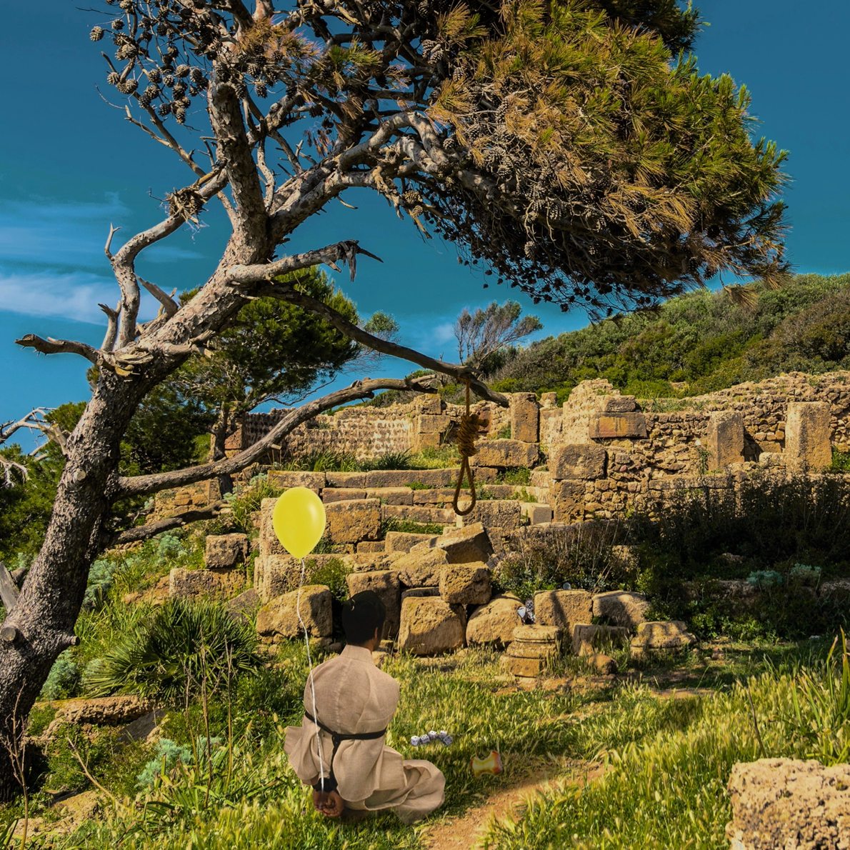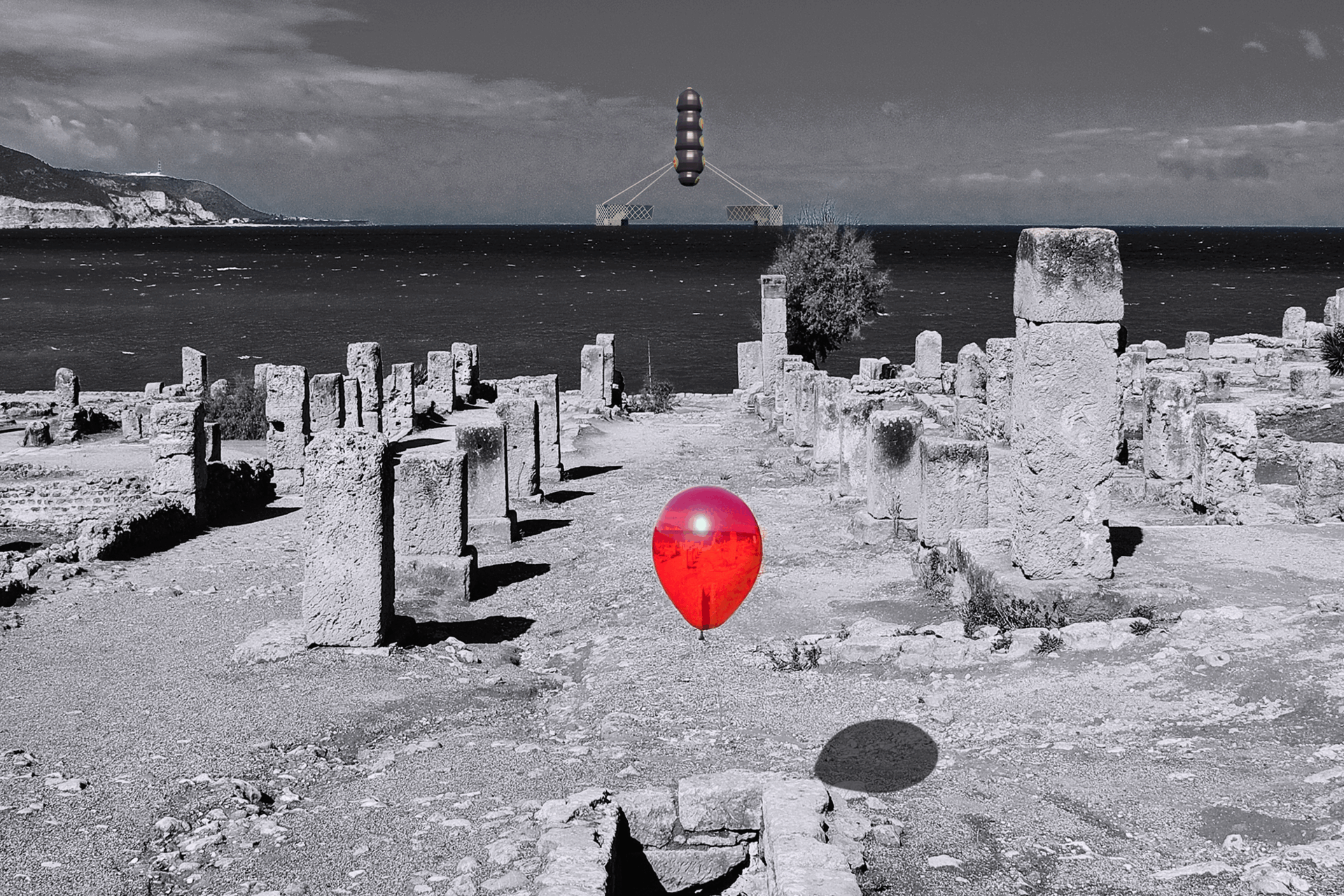But there is no pause. There is no silence, only the relentless rhythm of release. Each balloon rises, a fleeting fragment of excess, leaving behind a question the ruins cannot answer: How much can rise before nothing remains to ground it?