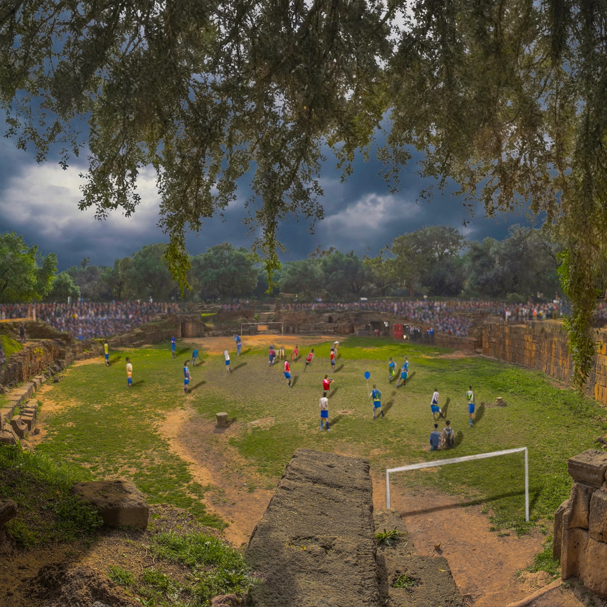 The garden hums with life as the afternoon stretches its golden arms over the ruins. A ball skips across the ground, laughter spilling out as if the air itself has learned to play. Stones that once carried the weight of history now frame a moment of genuineness - carefree, unbound, and fleeting.