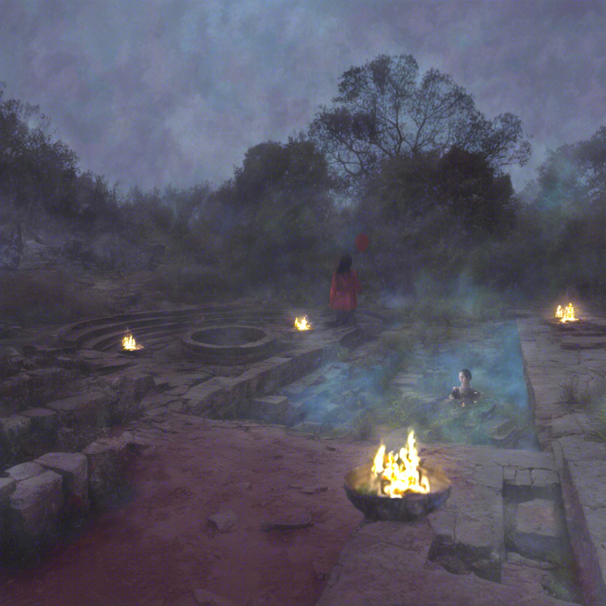 By midnight, the ruin dissolves into the night, its outlines softened by the steam rising from the warm waters. “Light was always excluded.”[1] Here, beneath the stars, the space feels like an embrace, intimate and infinite all at once.