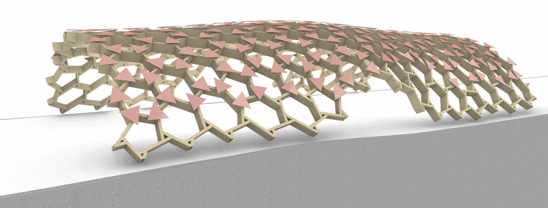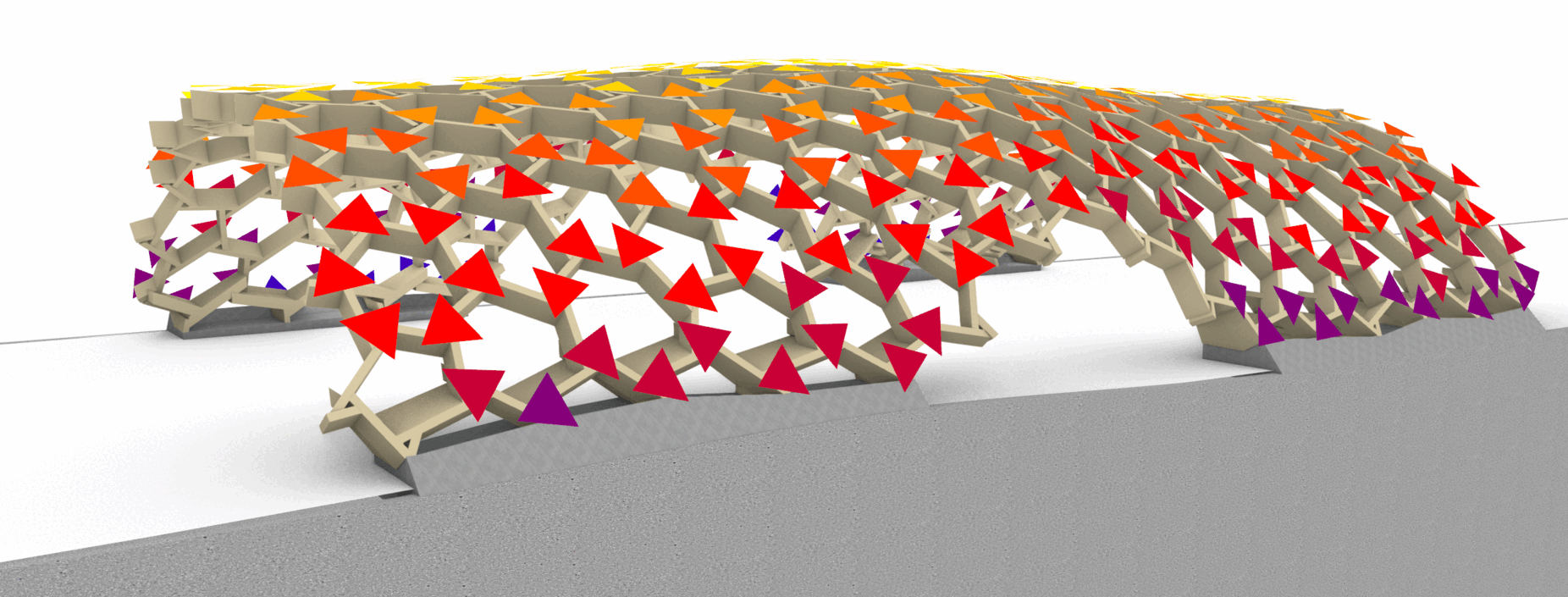 Module 1: A surface is generated to define the enclosure, functioning as a membrane under full tension. This ensures that its wooden translation will only experience compressive forces.